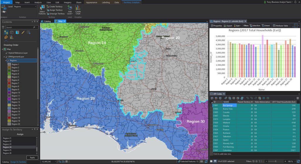 In the past, sales territories were defined by arbitrary, antiquated systems like zip codes, city limits, state lines, rivers, and roads instead of using data intelligence to increase business revenue and productivity.  Using data sets to understand the total available market space within a carve out territory, allows your sales territories to be defined by metrics like the number of and true value of the opportunities within it.